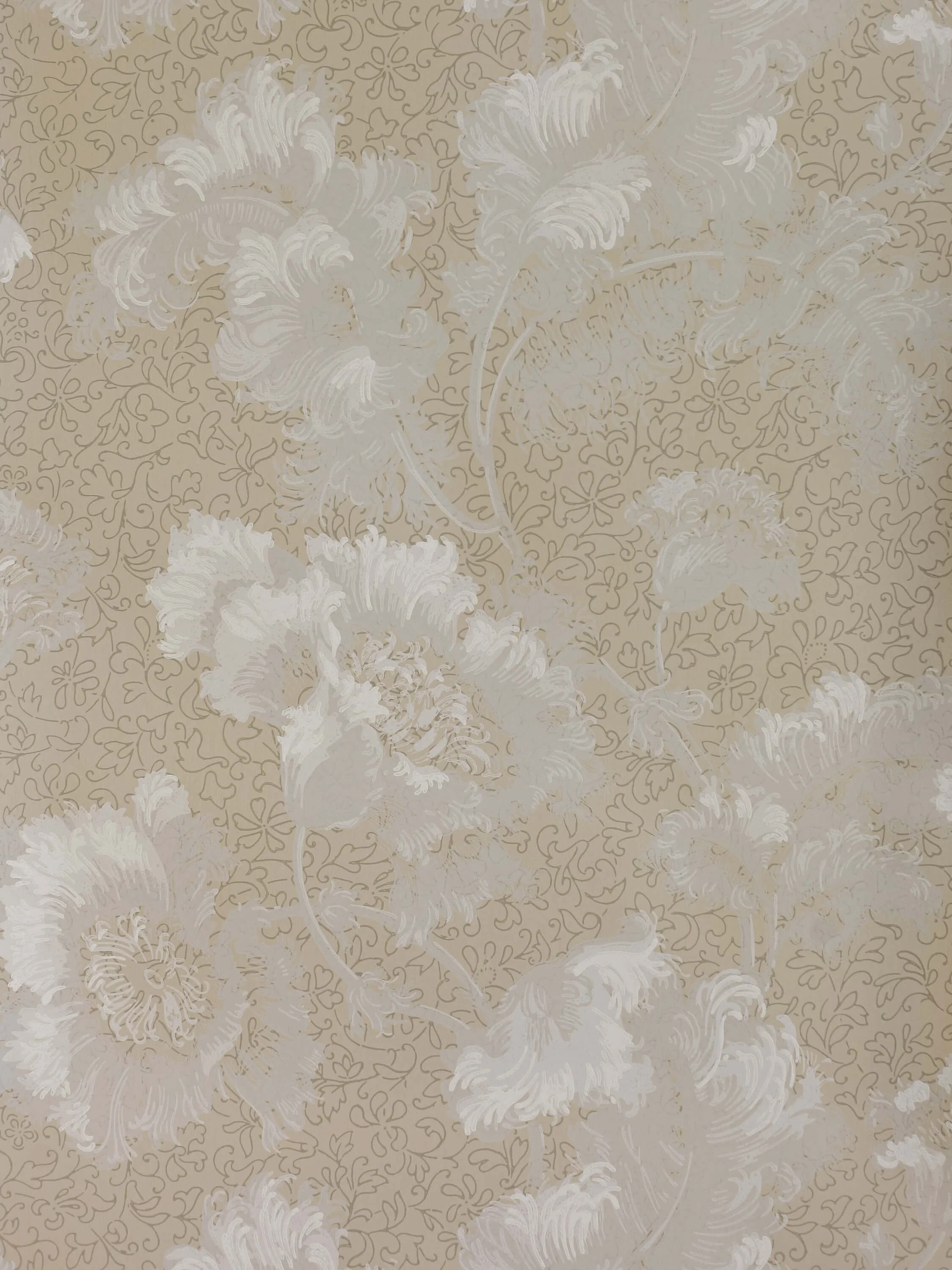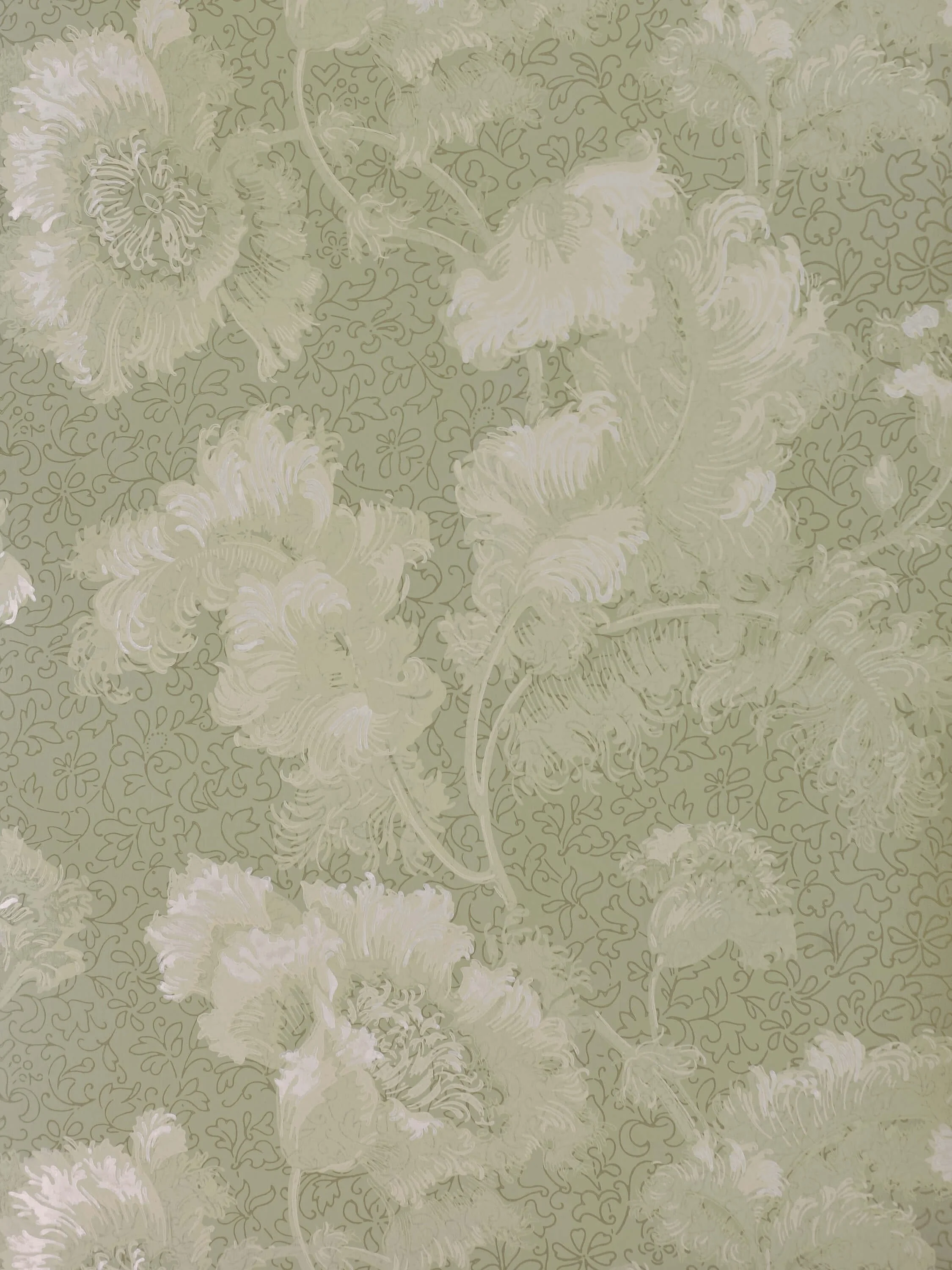 Discovered within Yorkshire’s Scampston Hall, this delicate design takes its inspiration from the ostrich feather, a symbol of luxury inspired by the booming Victorian fashion trade which almost saw the bird hunted to extinction. Its natural form embraces the typical organic lines and ‘whiplash’ curves of the Art Nouveau movement, originally block-printed as a celebration of the artisanal craftsmanship mass manufacturing threatened to take away.