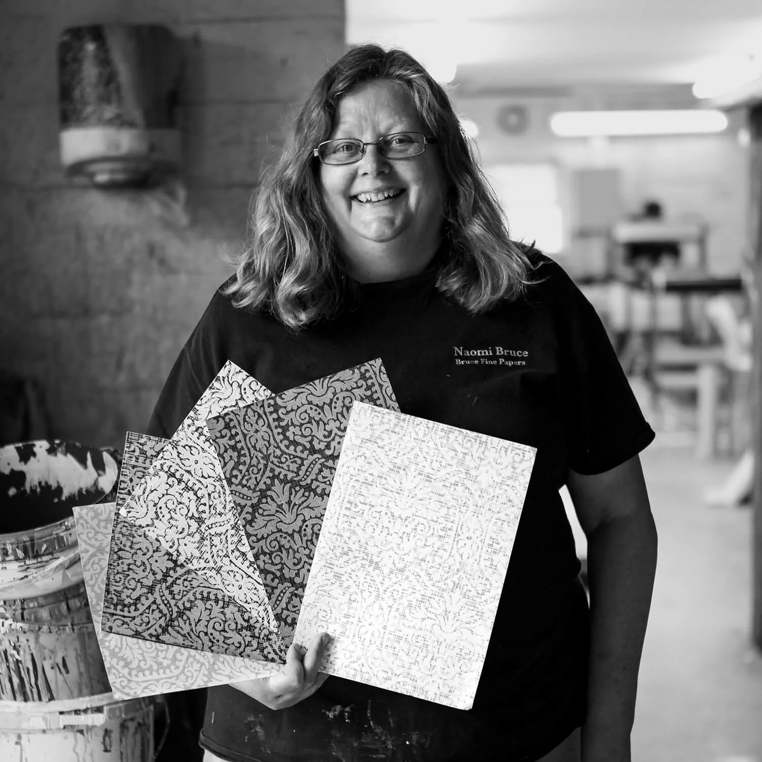 Naomi and Alex are the current team behind the company, working together in both business and marriage with their children Ellie and Jake on the production and design team. A small team of 8, Bruce Fine Papers is a bespoke company keeping the traditional craft of Hand Block Printing alive here in the UK.